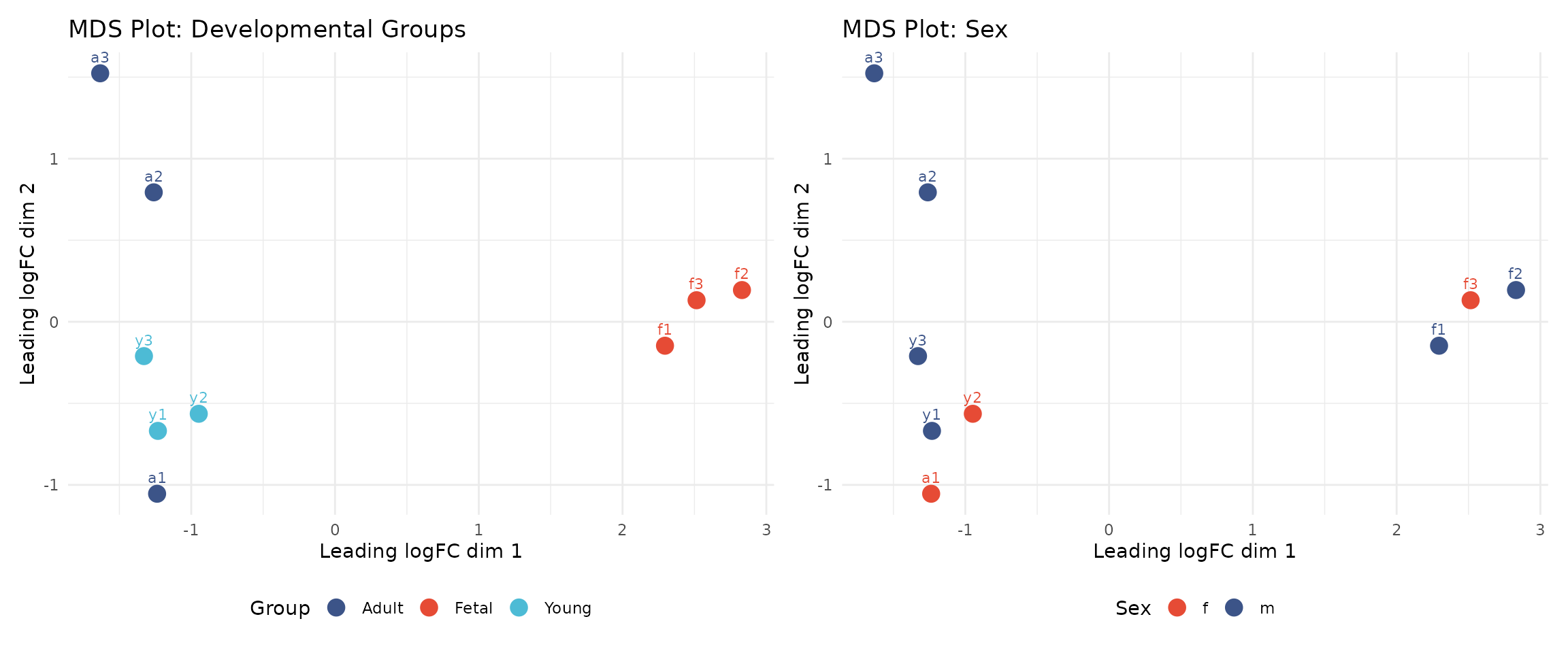 These results are reassuring: the primary axis of variation corresponds to biological differences (developmental stage) rather than technical artefacts.