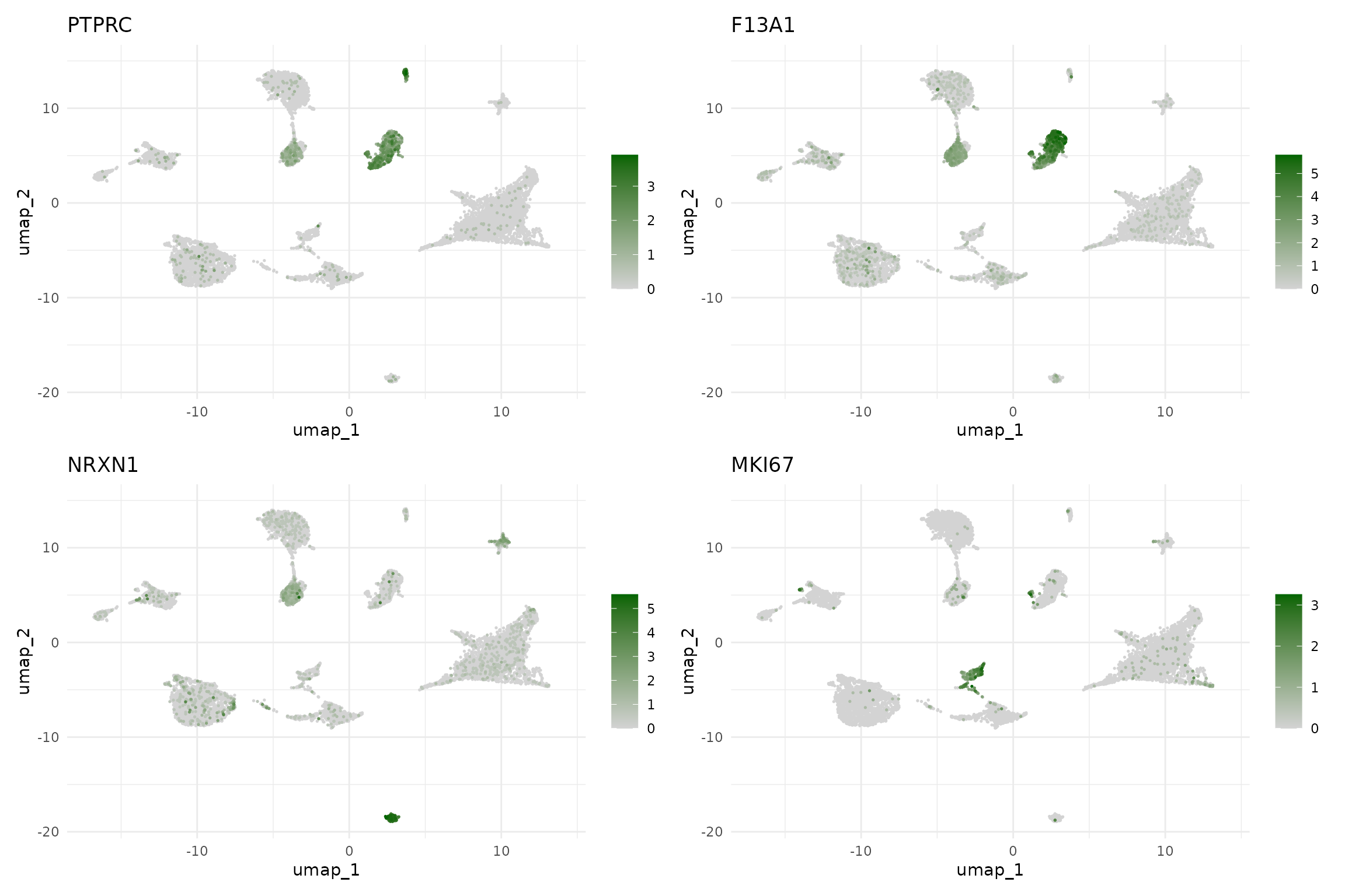 - Neural cells: Neurons and Schwann cells (NRXN1, PLP1)