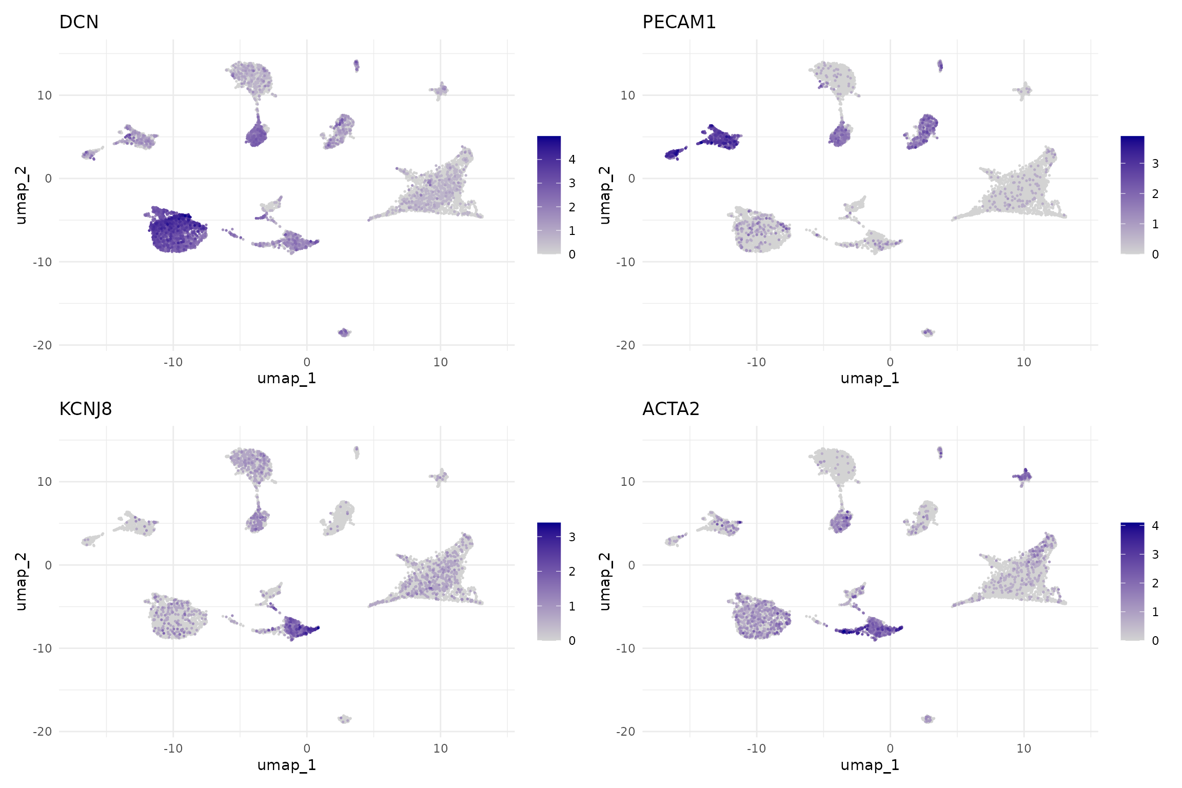 - Pericytes/Smooth muscle: Support vascular structures (ACTA2, RGS5)